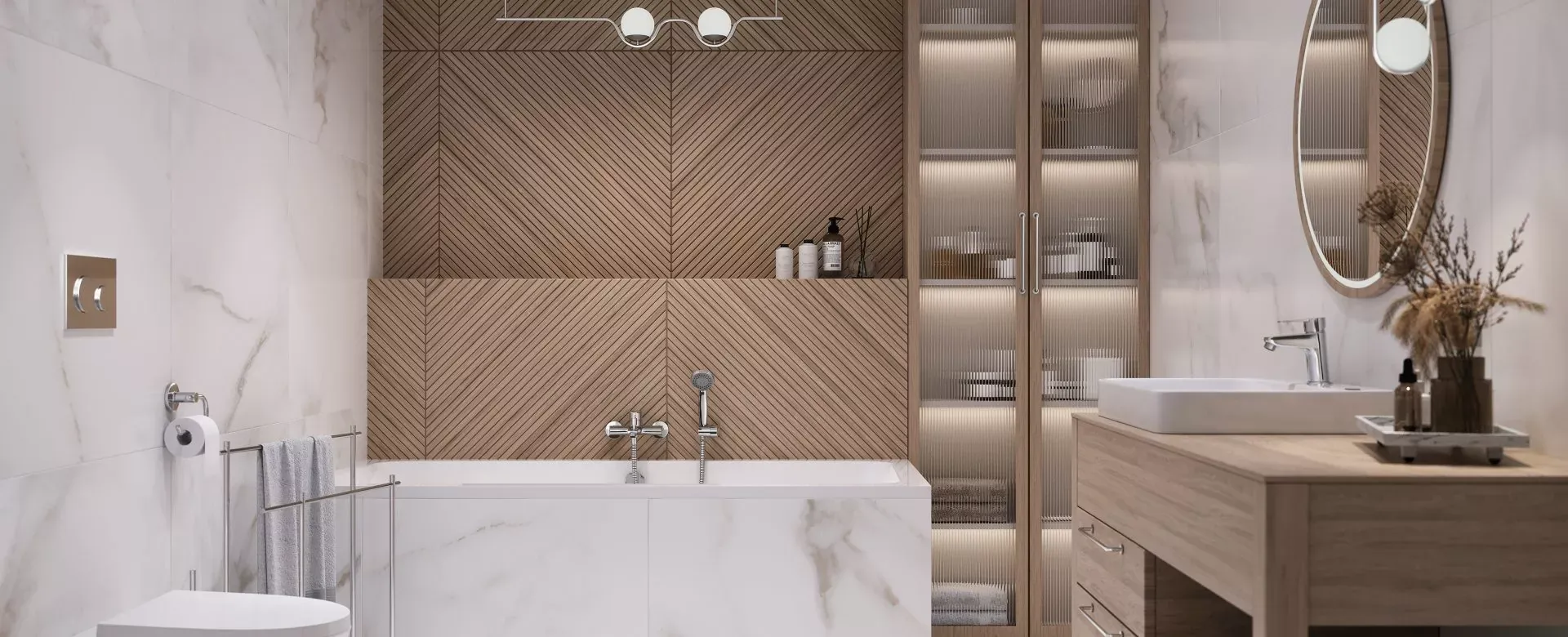 Dacă îți dorești un design interior sofisticat, combinația dintre marmură, lemn și baterii cromate este alegerea ideală! Marmura adaugă rafinament prin blaturile de lucru sau backsplash-uri care reflectă lumina, în timp ce lemnul, cu nuanțele sale calde, creează un ambient primitor și confortabil. Această combinație transformă bucătăria într-un spațiu elegant și armonios, perfect pentru fiecare moment petrecut acolo.